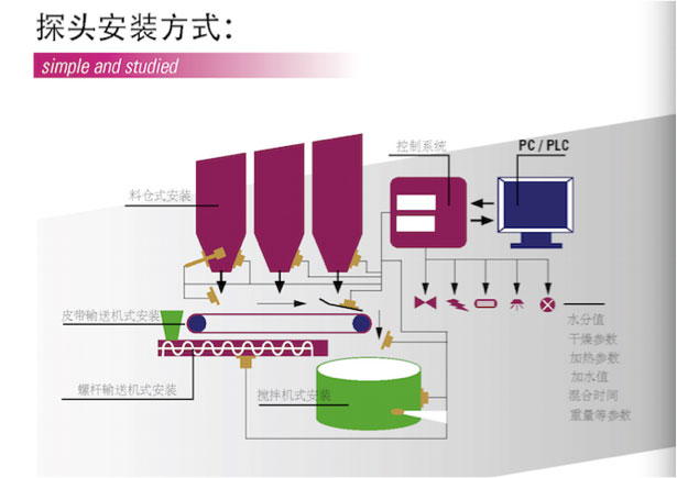 安裝方式 我們考慮到現場實際情況,在焦炭下料斜槽下邊加裝一個簡易料斗,將探頭安裝在該料斗上,這樣非常有利于拆裝和維護,中央處理單元安裝在主控室內,輸出信號可以和現有的自動配料系統進行通訊,或給主控室配備顯示儀表以實時顯示水分數據,該產品可以更加準確的反饋給自動配料系統焦炭在入爐前的水分含量,使得工作人員更加合理的安排配料比例,以大可能提高成品率。