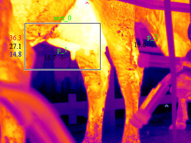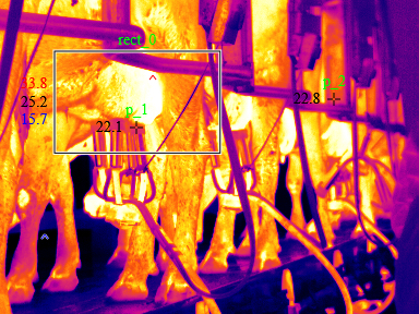 以下為某奶牛養殖場針對奶牛乳房病變進行熱像監測的效果圖
